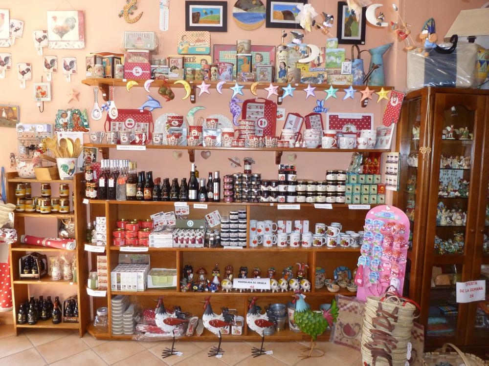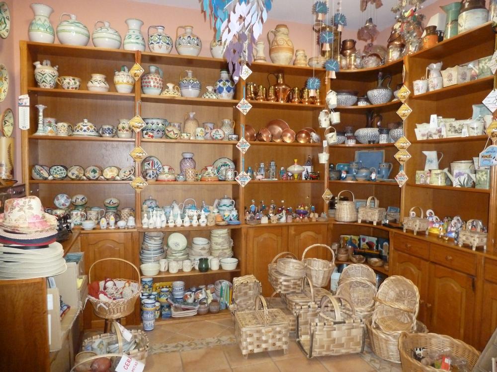Tenemos productos artesanos de cerámica tradicional y creativa, cestería de castaño y mimbre, cajas y bastones de madera, alabastro, pendientes de plata y esmaltes, porcelana, imanes, dedales, peluches, llaveros, camisetas, sombreros, paraguas, cobre y latón, cajas de música, juguetes de colección, latas decoradas,…