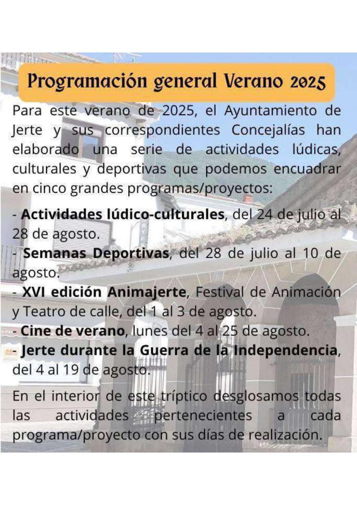 VERANO CULTURAL 2025 22 julio 2025 Del 24 de julio al 28 de agosto Galería imágenes Documentos veranoculturaljerte25.1.pdf (pdf 580,2 kB)