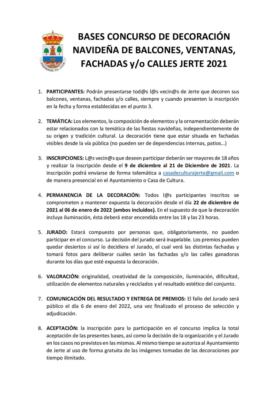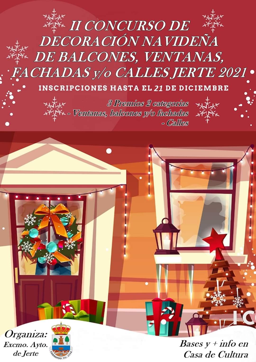 Se informa del II Concurso de Decoración Navideña . Se podrán realizar las inscripciones en la Casa de Cultura o a través del correo electrónico : casadeculturajerte@gmail.com