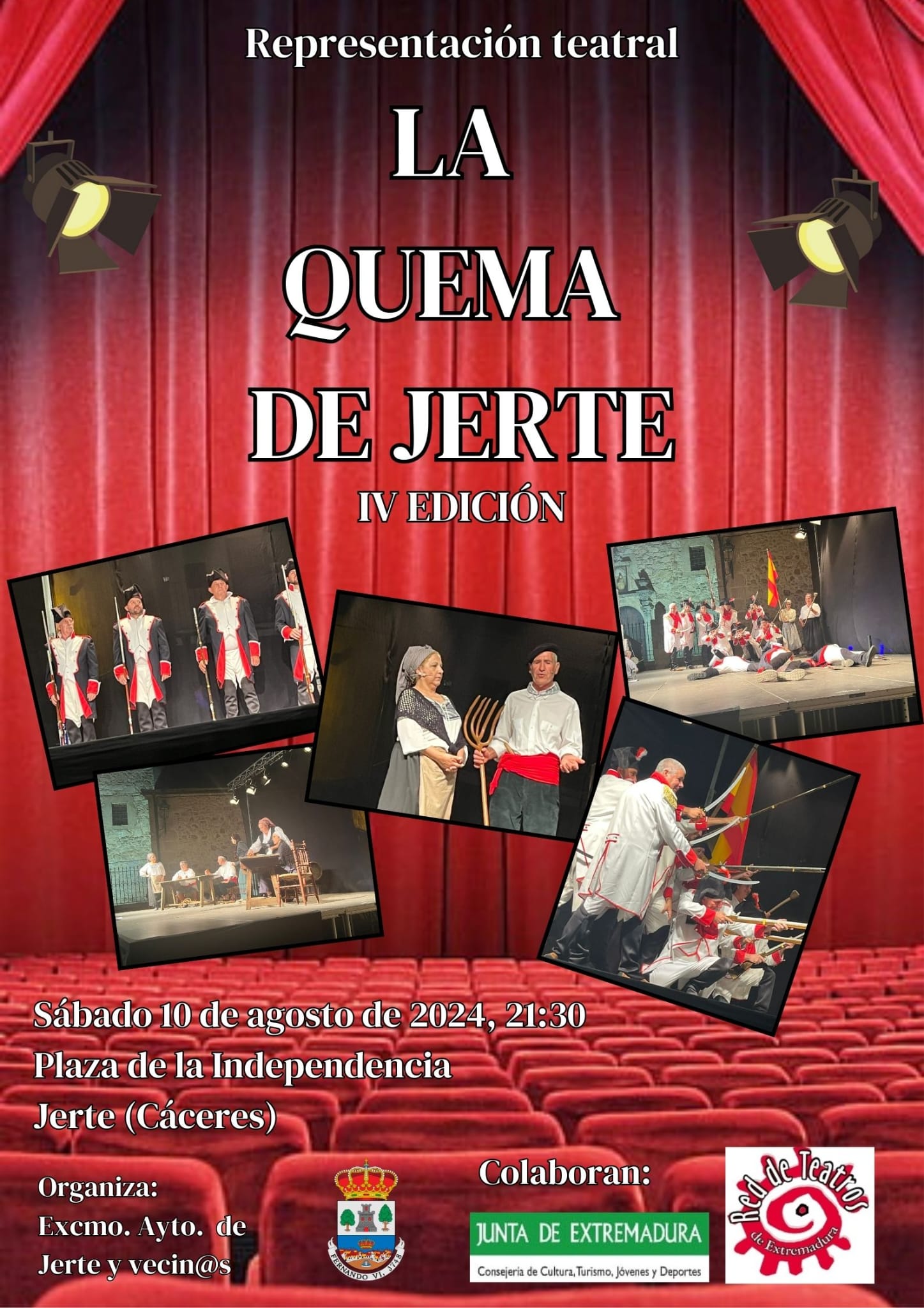 IV EDICIÓN LA QUEMA DE JERTE 10 agosto 2024 Sábado 10 de agosto Representación teatral e histórica de "La Quema del Jerte" en la Guerra de Independencia Lugar: Plaza de la Independencia a las 21:30 h.