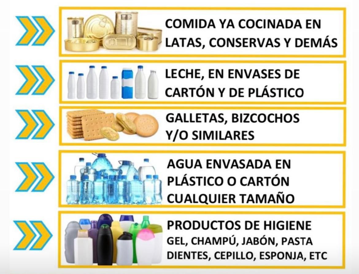 Solicitamos la colaboración de todos los vecinos que deseen aportar estos productos, los cuales pueden ser entregados en el Pabellón Municipal