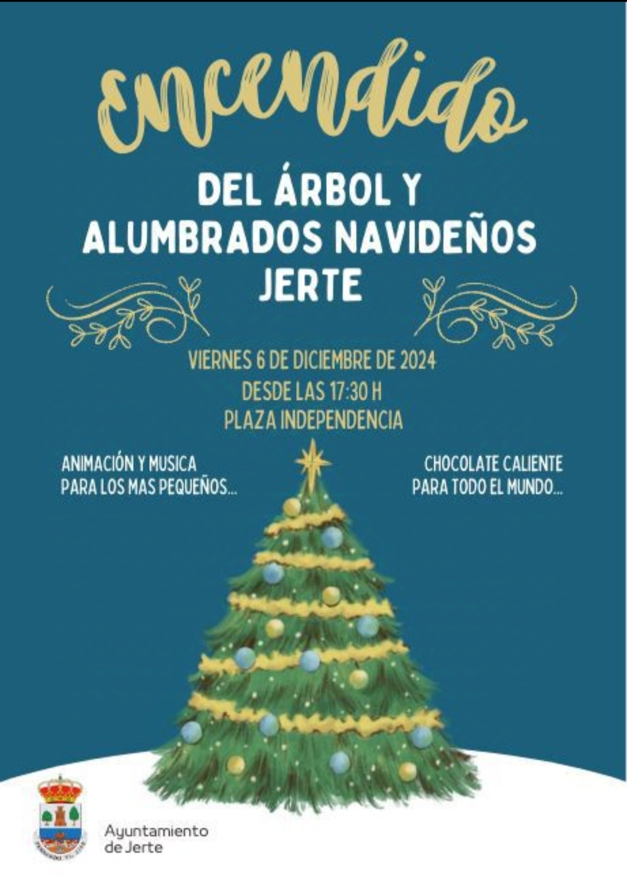 ENCENDIDO DEL ÁRBOL Y ALUMBRADOS NAVIDEÑOS 05 diciembre 2024 Viernes 6 de diciembre - Hora: 17:30 h. - Lugar: Plaza de la Independencia - Animación y música para los más pequeños - Chocolate caliente para todo el mundo