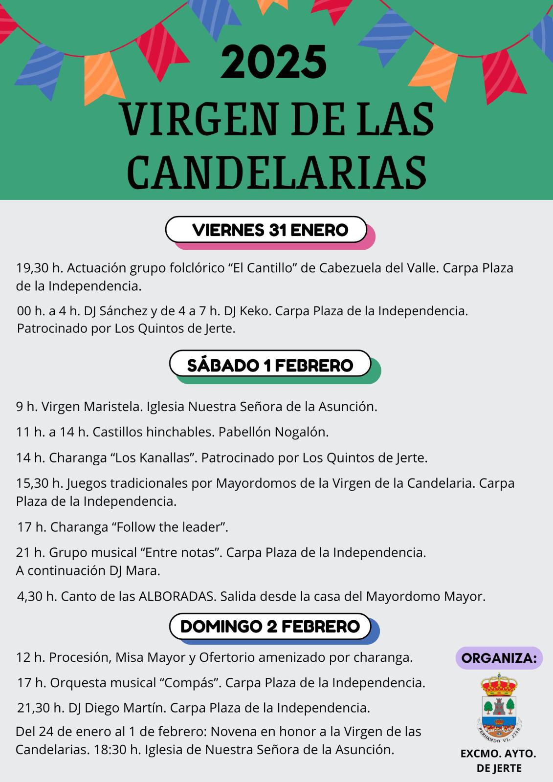 Del 24 de enero al 1 de febrero: Novena en honor a la Virgen de las Candelarias.