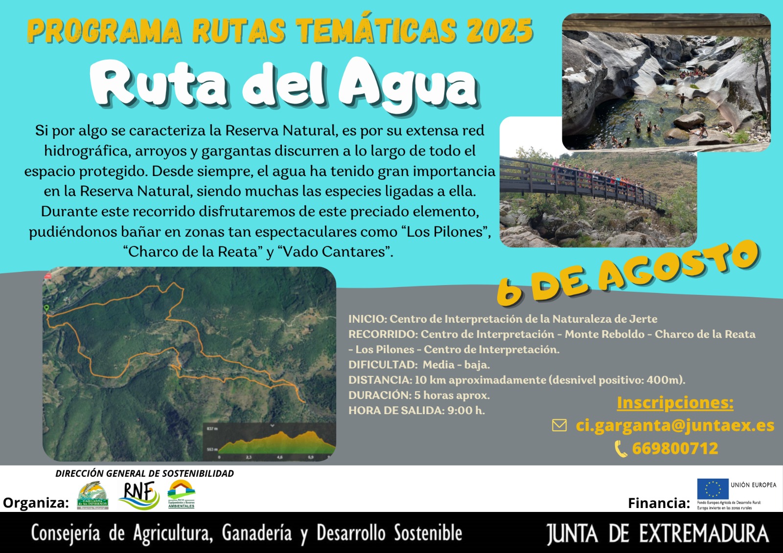 Si por algo se caracteriza la Reserva Natural, es por su extensa red hidrográfica, arroyos y gargantas discurren a lo largo de todo el espacio protegido. Desde siempre, el agua ha tenido gran importancia en la Reserva Natural, siendo muchas las especies ligadas a ella. Durante este recorrido disfrutaremos de este preciado elemento, pudiéndonos bañar en zonas tan espectaculares como “Los Pilones”, “Charco de la Reata” y “Vado Cantares”.